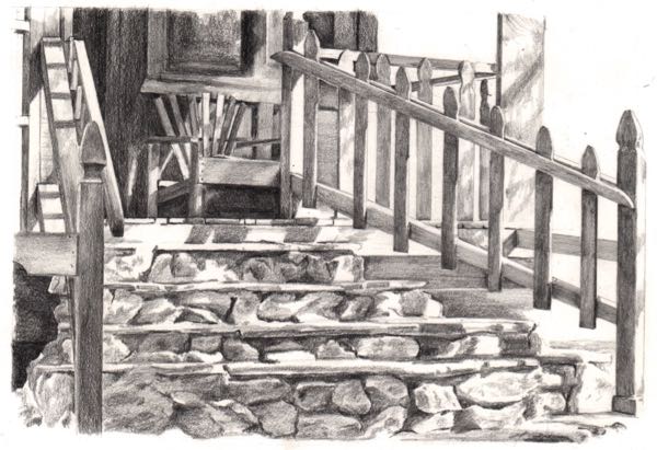 Something about a chair or bench on a porch is so inviting. One of the established but unwritten elements of cabin etiquette is that if someone is sitting on the deck, it is okay to stop and chat from the road. They can invite you up or not, but it is always good to exchange greetings as you pass by folks just sitting around.
