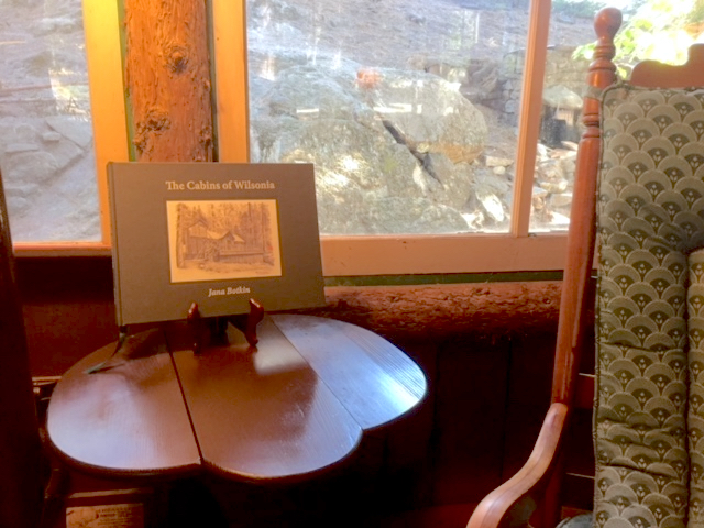 You too can have your own fancy looking book called The Cabins of Wilsonia. (But you’ll have to find your own table-top easel.)